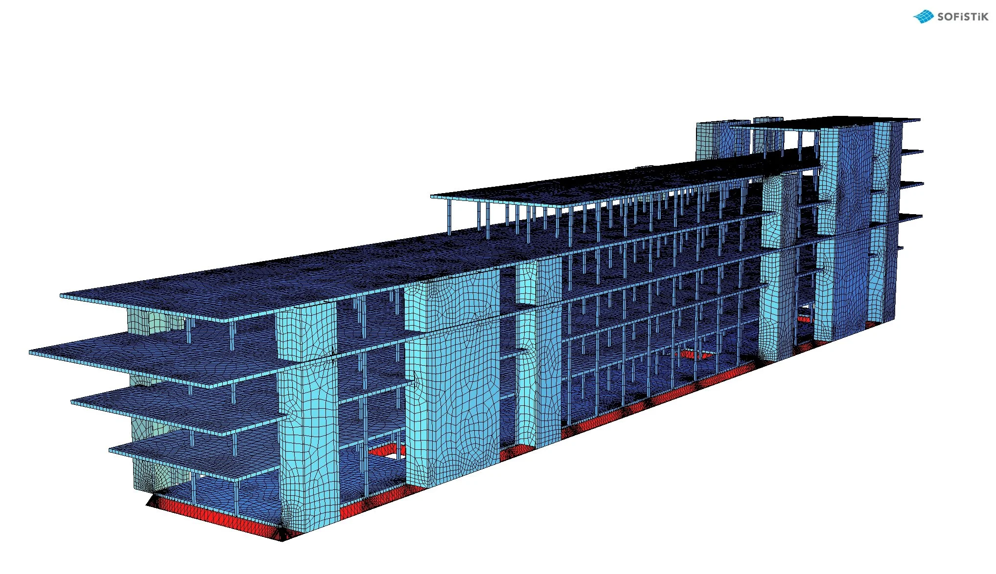 Given the local climate with hot summers and cold dry winters, the deployment of external solar shading on the long facades, including deployable shading panels on rails, reflects advanced passive design strategies that allow fine-tuned control of solar heat gain (Lechner, 2015; Santamouris, 2013). Movable shading systems adapt to changing daylight needs and reduce cooling loads during summer, supporting thermal comfort and energy efficiency (Heschong Mahone Group, 1999). Opaque facade sections accommodate technical and service equipment while maintaining thermal insulation, whereas fully glazed areas maximize daylight harvesting. This duality represents a performance-driven facade design approach optimizing energy conservation without compromising operational flexibility (Carmody et al., 2011).